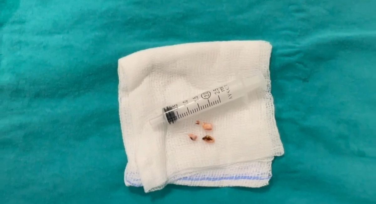 Çocuk cerrahisi uzmanı Op. Dr. Selim Özkaya ve ekibi tarafından genel anestezi altında, bronkoskopi uygulanan Yiğit’in soluk borusu ile akciğer hava yollarını tıkayan ceviz parçaları çıkarıldı.