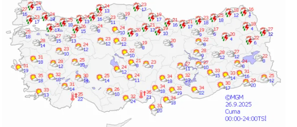 Önümüzdeki günler Türkiye için hava durumu açısından bir geçiş dönemi olacak. Batıda yazdan kalma sıcaklıklar devam ederken, iç ve doğu bölgelerde yağışlar sonbaharın gelişini müjdeleyecek.