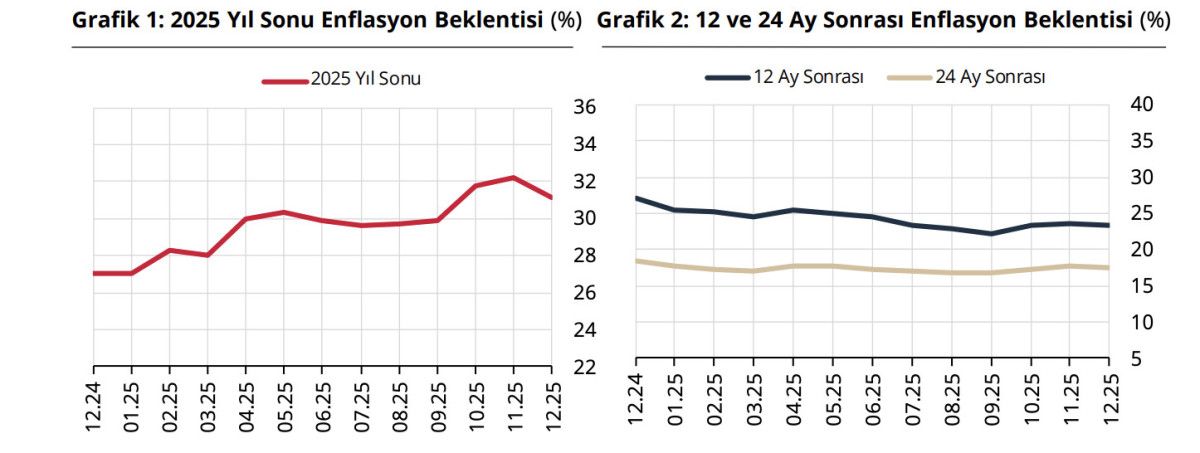 Katılımcıların cari yıl sonu tüketici enflasyonu (TÜFE) beklentisi bir önceki anket döneminde yüzde 32,20 iken, bu anket döneminde yüzde 31,17 oldu.