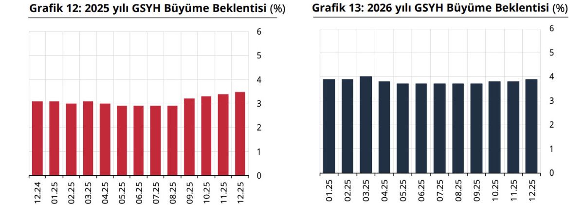 GSYH 2026 yılı büyüme beklentisi ise bir önceki anket döneminde yüzde 3,8 iken, bu anket döneminde yüzde 3,9 olarak gerçekleşti.